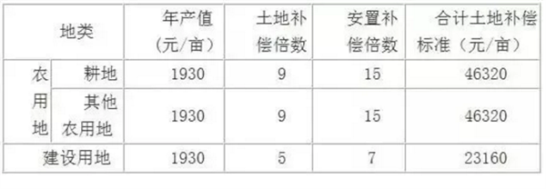 根据《安徽省人民政府关于调整安徽省征地补偿标准的通知》(皖政〔2015〕24号),该用地征收农转用初步按下表确定土地补偿费和安置补助费标准拟定《征收土地方案》上报审批。