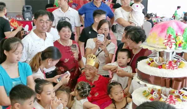 芬芳的生日花篮、满桌的桃李瓜果、香甜的生日蛋糕、亲人们脸上掩饰不住的洋洋喜气,汇成了温馨喜庆的暖流。8月11日一大早,太和县城关镇吴营社区后徐庄陈秀荣老人的子孙们都从四面八方赶回家中,齐聚在她身边,一